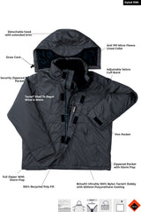- Quilted 160 mg insulated nylon taffeta body and 100% polyester 440 gm anti-pill microfleece lined collar, quilted 120 gm nylon taffeta sleeve.