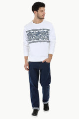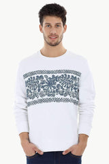 Giving your tried and tested classic sweatshirt a contemporary makeover with this holiday print across the chest part. Pair this relaxed piece with our collection of cuff jogger sweatpants