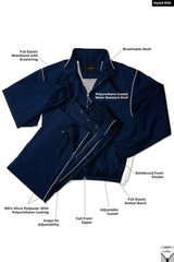 - Fully lined breathable polyester mesh, contrast white piping on collar & armholes, contrast white panel on sides, elastic cuffs & bottom band.