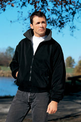 - Reversible Bomber Jacket with 100% peached polyester satin back micro twill shell.