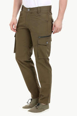 Men's Olive Green 7 Pocket Twill Cargo Pants